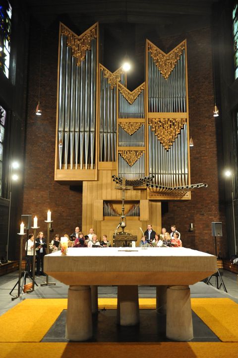 Georg Hieronymi entwarf auch die schwarz gebeizten Sitze (Sedilien) auf der Altarinsel.